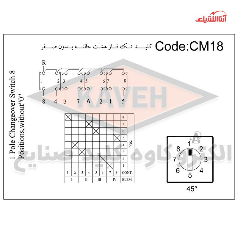 مجموعه الکترو کاوه، به عنوان یکی از اصلیترین تولیدکنندگان کلیدها، انواع مختلف کلیدهای گردان را با حالات و آمپرهای متنوع تولید کرده تا شما کاربران بتوانید بهترین انتخاب را داشته باشید. کلید گردان سلکتوری 25 آمپر تکفاز هشت حالته بدون صفر الکترو کاوه کد CM18، یکی از این محصولات است که برای ساخت آن از مواد اولیه مرغوب استفاده شده که باعث افزایش مقاوت و استحکام آن میشود. سازندگان کلید گردان الکترو کاوه، با به کار گرفتن تکنولوژی روز دنیا و در نظر داشتن نیازهای کاربران، محصولی با ابعاد متناسب و ظاهری زیبا را تولید کردهاند.