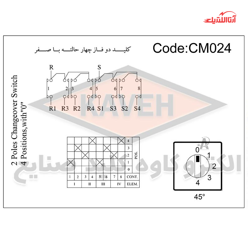 مجموعه الکترو کاوه، به عنوان یکی از اصلیترین تولیدکنندگان کلیدها، انواع مختلف کلیدهای گردان را با حالات و آمپرهای متنوع تولید کرده تا شما کاربران بتوانید بهترین انتخاب را داشته باشید. کلید گردان سلکتوری 16 آمپر دو فاز چهار حالته با حالت صفر الکترو کاوه کد CMO24، یکی از این محصولات است که برای ساخت آن از مواد اولیه مرغوب استفاده شده که باعث افزایش مقاوت و استحکام آن میشود. سازندگان کلید گردان الکترو کاوه، با به کار گرفتن تکنولوژی روز دنیا و در نظر داشتن نیازهای کاربران، محصولی با ابعاد متناسب و ظاهری زیبا را تولید کردهاند.