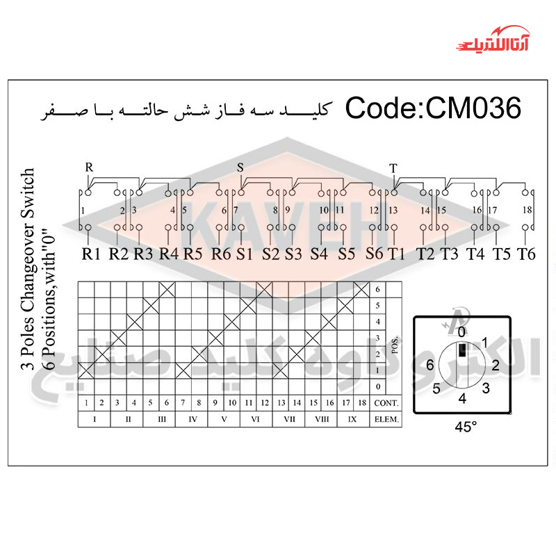 مجموعه الکترو کاوه، به عنوان یکی از اصلیترین تولیدکنندگان کلیدها، انواع مختلف کلیدهای گردان را با حالات و آمپرهای متنوع تولید کرده تا شما کاربران بتوانید بهترین انتخاب را داشته باشید. کلید گردان سلکتوری 40 آمپر سه فاز شش حالته با حالت صفر الکترو کاوه کد CMO36، یکی از این محصولات است که برای ساخت آن از مواد اولیه مرغوب استفاده شده که باعث افزایش مقاوت و استحکام آن میشود. سازندگان کلید گردان الکترو کاوه، با به کار گرفتن تکنولوژی روز دنیا و در نظر داشتن نیازهای کاربران، محصولی با ابعاد متناسب و ظاهری زیبا را تولید کردهاند.