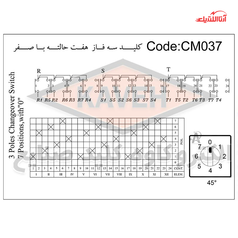 مجموعه الکترو کاوه، به عنوان یکی از اصلیترین تولیدکنندگان کلیدها، انواع مختلف کلیدهای گردان را با حالات و آمپرهای متنوع تولید کرده تا شما کاربران بتوانید بهترین انتخاب را داشته باشید. کلید گردان سلکتوری 16 آمپر سه فاز هفت حالته با صفر الکترو کاوه کد CMO37، یکی از این محصولات است که برای ساخت آن از مواد اولیه مرغوب استفاده شده که باعث افزایش مقاوت و استحکام آن میشود. سازندگان کلید گردان الکترو کاوه، با به کار گرفتن تکنولوژی روز دنیا و در نظر داشتن نیازهای کاربران، محصولی با ابعاد متناسب و ظاهری زیبا را تولید کردهاند.