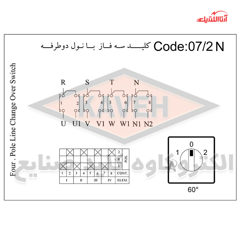 بررسی و معرفی کلید گردان سه فاز و نول دو طرفه 100 آمپر الکترو کاوه کد PL130