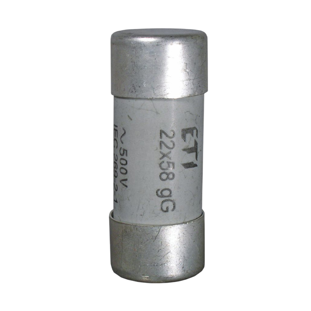 - فیوز استوانه ای سایز 58×22 برای حفاظت از مدارهای قدرت، مدارهای تغذیه و تأسیسات الکتریکی با توان متوسط تا بالا (که اصطلاحاً کاربردهای نیمهسنگین تا سنگین نامیده میشوند) به کار میرود.