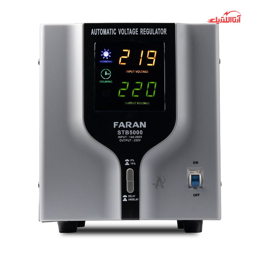 استابلایزر فاران مدل STB با ظرفیت 5000 ولت آمپر و 98 درصد بازدهی میتواند خروجی پایداری را ارائه دهد. دستگاه STB فاران به یک نمایشگر برای نمایش ولتاژ خروجی مجهز شده است.