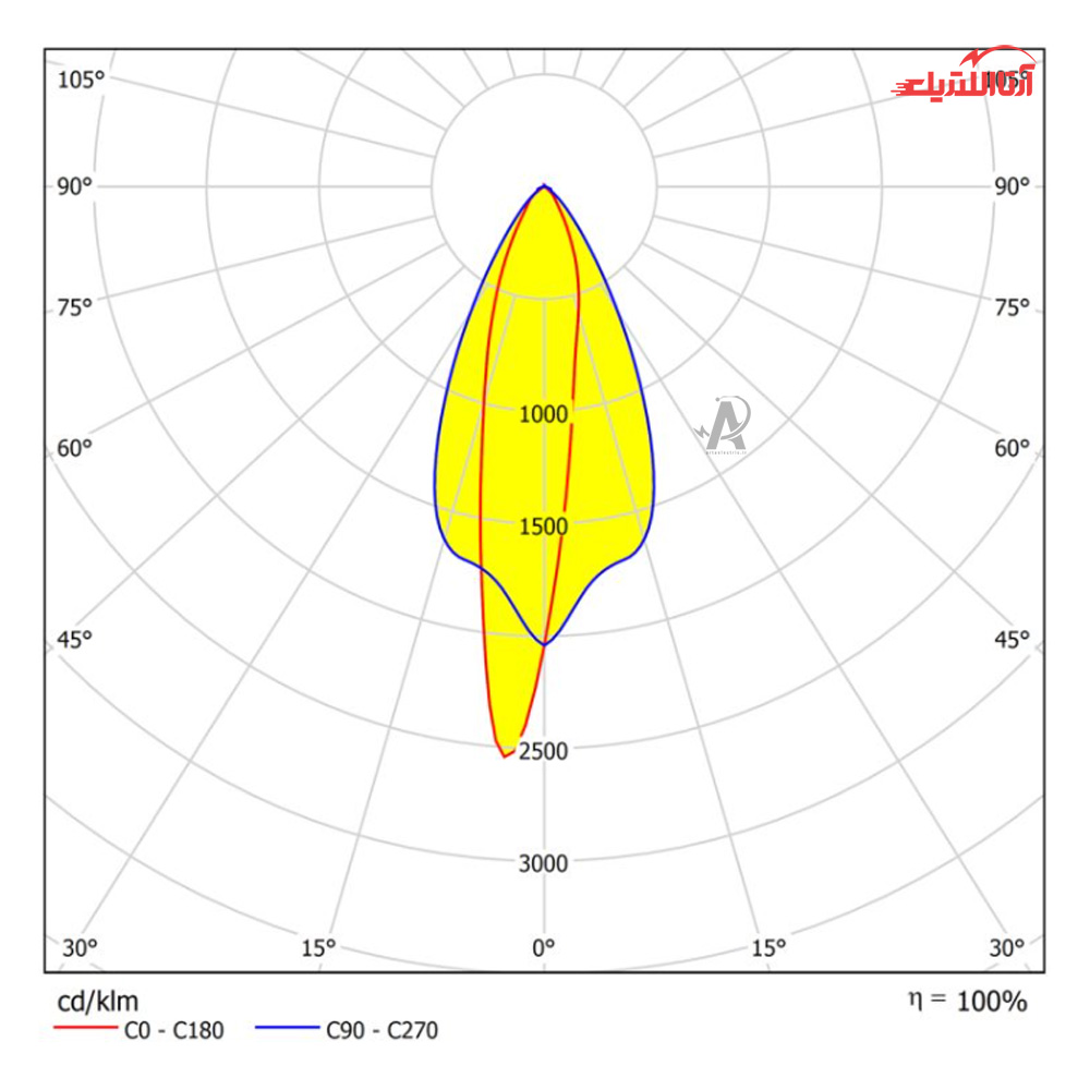 ویژگیهای وال واشر 20 وات 100 سانت گلنور پخش نور 3*15*50 درجه