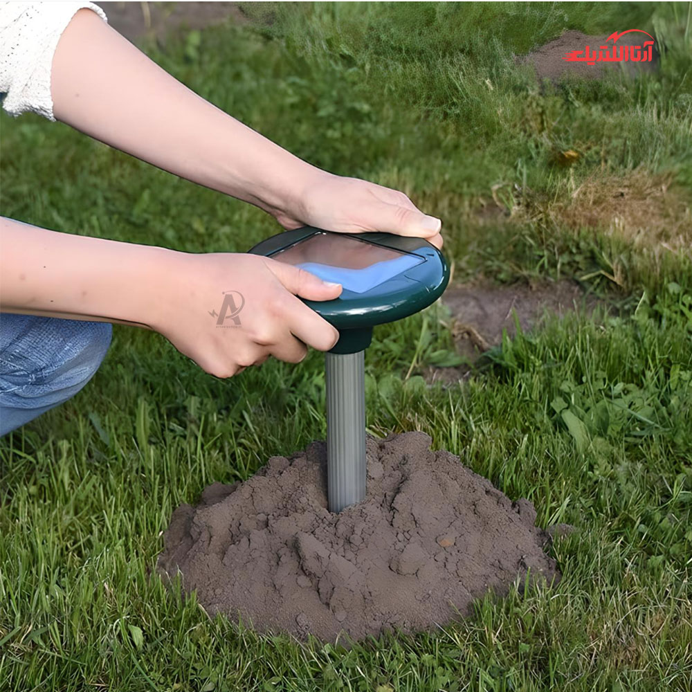 ابتدا قسمت بالای دستگاه را باز کرده و پنل خورشیدی آن را به مدت یک روز زیر نور مستقیم خورشید قرار دهید تا باتری دستگاه به طور کامل شارژ شود. بعد از اینکه دستگاه بوق زد، یعنی باتری‌ها آماده هستند. حالا، قسمت میله‌ای دستگاه را به قسمت بالایی آن وصل کرده و دستگاه را در خاک فرو کنید. این دستگاه توانایی پوشش مساحت 625 متر مربع را در همه جهات دارد و دارای 2 عدد باتری قابل شارژ با عمر مفید تقریبی 3-5 سال است.