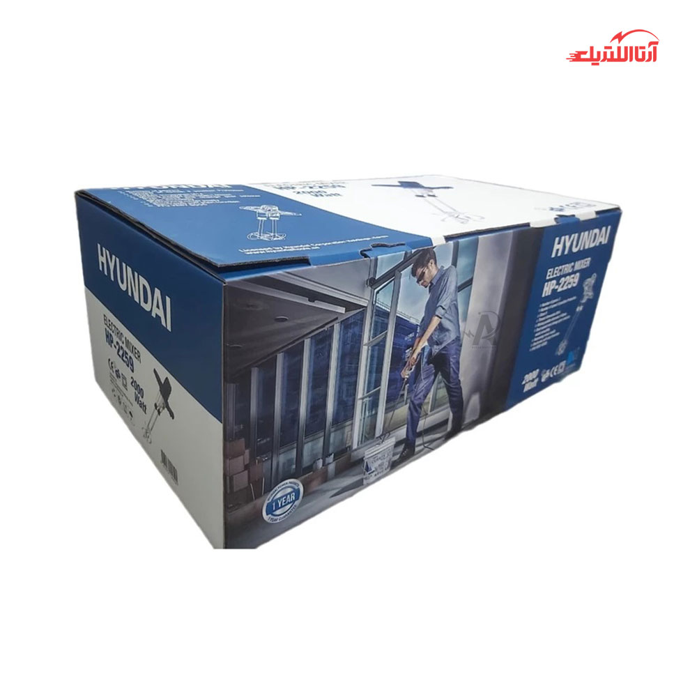 میکسر دو تیغ برقی 2000 وات هیوندایی مدل HP-2259 یک محصول بسیار کاربردی در حوزه صنعت و ساختمان است که توانسته عمل هم زدن و مخلوط کردن را برای ما بسیار آسان و سریع کند. این محصول می‌تواند موادی مانند سیمان و کچ و هر ماده ای که برای استفاده نیاز به مخلوط شدن دارد را صرف مدت کوتاهی در دو سرعت متفاوت از 250 تا 500 و همچنین 400 تا 800 دور در دقیقه با توجه به انتخاب شما میکس کند و این عمل به دلیل وجود گیربکس دو سرعته در میکسر HP-2259 است که با حرکت دادن دو عدد شفت از جنس فولاد در اندازه 915 میلی‌متر که دو تیغه در انتهای آن قرار دارد و به وسیله رزوه M14 به دستگاه سه نظام میکسر وصل شده امکان پذیر کرده است.