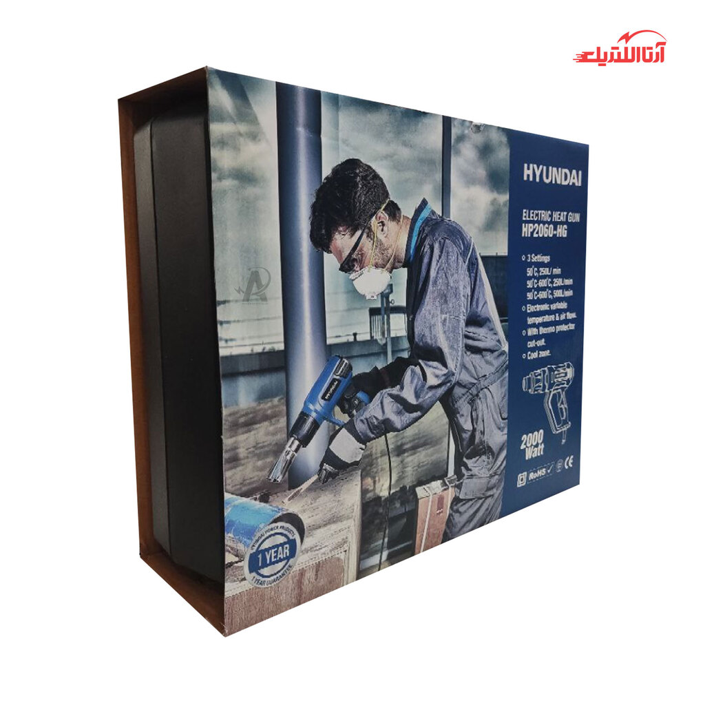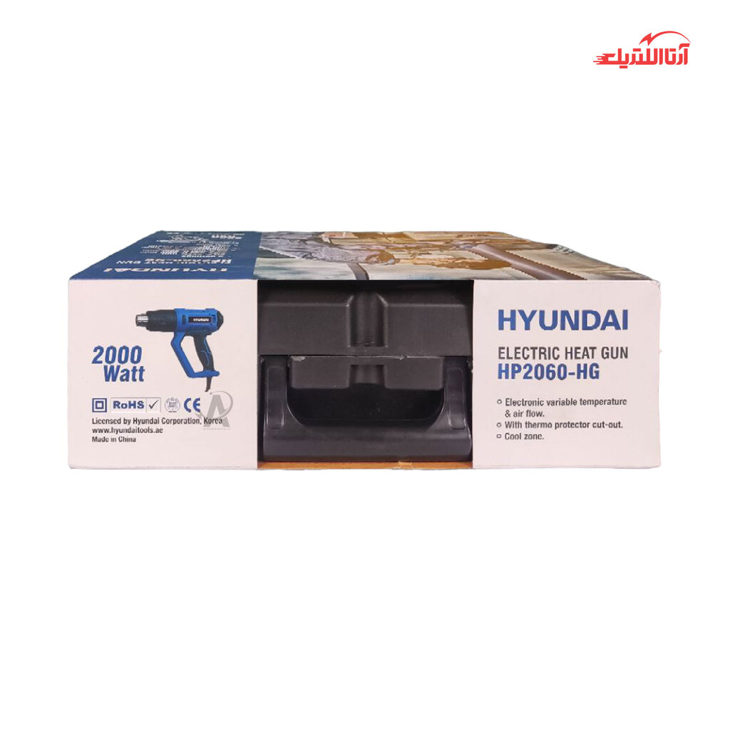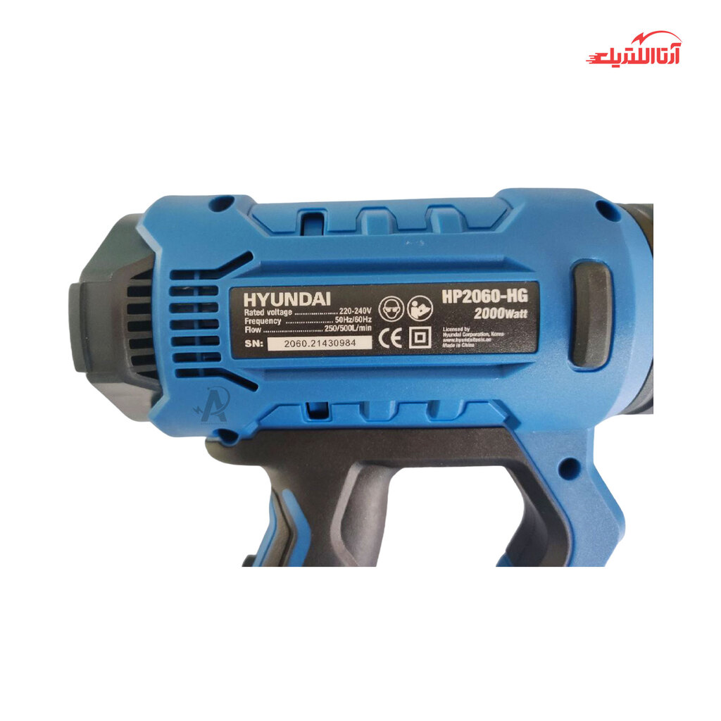 سشوار صنعتی هیوندای مدل HP2060-HG، دستگاهی جهت دمش باد داغ بوده که با منبع انرژی آن برق است. این دستگاه قدرتمند با توان 2000 وات، امکان تنظیم حرارت و سرعت هوا در 3 حالت گوناگون را داراست. درجه حرارت در دور اول، 50 درجه سانتی گراد و هوای خروجی 350 لیتر بر دقیقه، در حالت دوم با دمای 50 تا 600 درجه سانتیگراد و هوای خروجی 350 لیتر بر دقیقه و در حالت سوم با دمای 50 تا 600 درجه سانتی گراد و هوای خروجی 500 لیتر بر دقیقه است. بدنه این دستگاه عایق دوبل بوده و در ساخت آن از بهترین مواد ساخته شده و جهت حفظ ایمنی کاربر، پوشش محافظ حرارتی برای محصول در نظر گرفته شده. همچنین برای کار در مکان‌های باریک قابلیت در آوردن پوشش محافظ المنت وجود دارد. این سشوار، به منظور محافظت و حمل و نقل آسان به همراه کیف BMC بوده و با لوازم جانبی به فروش می‌رسد. این محصول باکیفیت، ساخت کشور چین و تحت لیسانس کشور کره بوده و دارای 12 ماه گارانتی شرکت ایران هیوندای است.