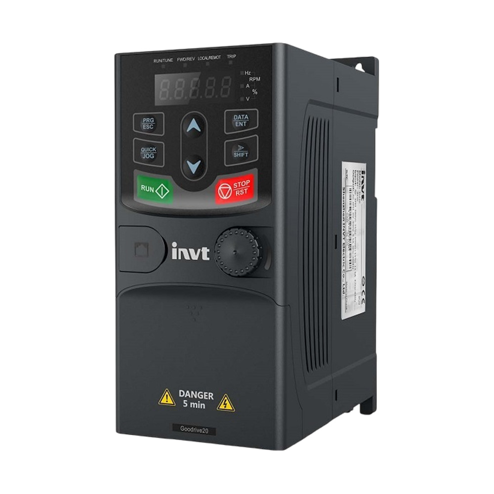 برند INVT یکی از تولیدکنندگان مطرح جهانی در زمینه تجهیزات اتوماسیون صنعتی و درایوهای فرکانس متغیر است که با بهرهگیری از فناوریهای نوین کنترل موتور و طراحی مهندسی دقیق، محصولات متنوع و قابل اعتمادی را برای صنایع مختلف ارائه میدهد. این شرکت با تکیه بر سالها تجربه و تحقیق، اینورترهایی با کارایی بالا، نصب آسان، ابعاد فشرده و مقاومت بالا در شرایط محیطی سخت تولید میکند. درایو GD20 یا Good Drive 20 اینورتر جمعوجور و اقتصادی شرکت INVT است که برای کاربردهای عمومی با توان پایین طراحی شده است. این مدل با فناوری V/F Control، کنترل PID، ترمز DC و پورت Modbus عملکرد دقیق و پایدار ارائه میدهد. طراحی فشرده آن حدود ۱۵٪ فضای نصب کمتر نسبت به مدلهای مشابه نیاز دارد.