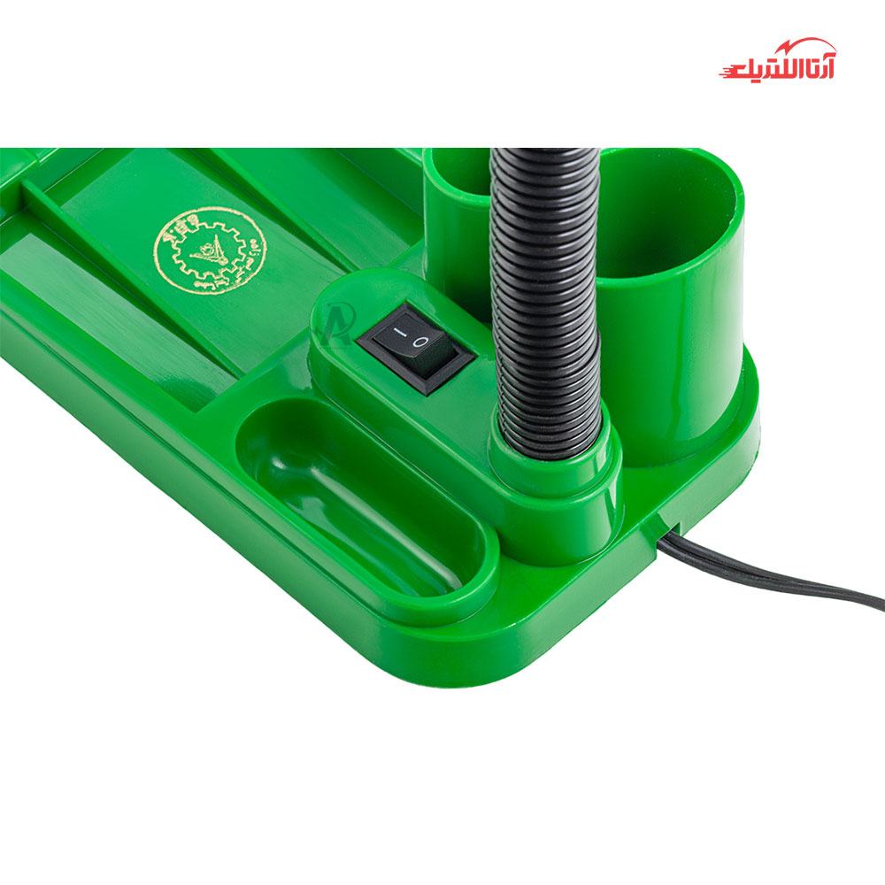 چراغ مطالعه تحریری علاوه بر طراحی ساده و کاربردی بسیار بادوام است. با استفاده از گردنی لاستیکی که حالت فنری دارد، به راحتی می‌توان ارتفاع و زاویه تابش نور را تنظیم کرد. بر روی پایه پلاستیکی این چراغ جا مدادی برای قرار دادن نوشت افزار تعبیه شده است. توصیه می‌شود توان مصرفی لامپ مورد استفاده بیشتر از 60 وات نباشد. این محصول در رنگ‌های متنوعی (سفید، مشکی، سبز، قرمز و صورتی) ارائه می‌شود. از ویژگی‌های این محصول طراحی ساده و کاربردی، کیفیت مناسب، قابلیت تنظیم ارتفاع و زاویه تابش نور چراغ، جا مدادی بر روی پایه و  کلید به منظور خاموش و روشن کردن لامپ اشاره کرد. این چراغ با طول گردنی 270 میلی‌متر، قطر حباب 110 میلی‌متر و وزن: 420 گرم  در اختیار مصرف کننده گرامی قرار می‌گیرد. با افتخار این کالای کاربردی ساخت ایران است. محصول برای نورپردازی میز مطالعه کودکان توصیه می‌شود.