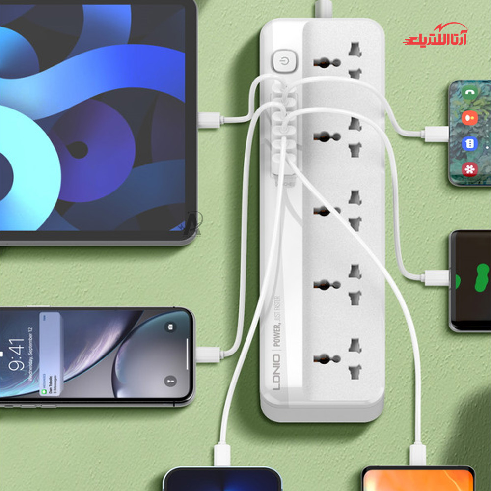 • 6 پورت شارژر USB AUTO-ID توان 12 وات با ولتاژ 5 ولت و جریان 3.4 آمپر