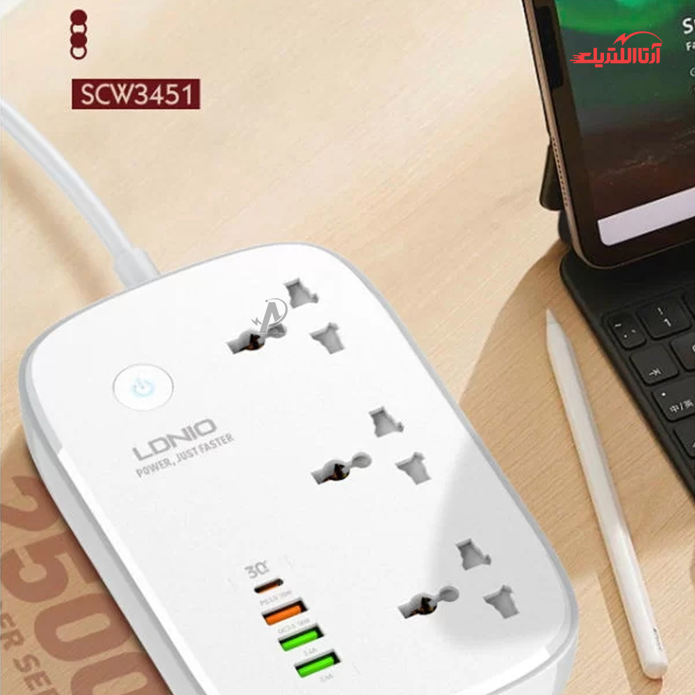 چند راهی سه خانه الدینیو مدل SCW3451، یکی از چندراهی‌هایی‌ است که توسط مجموعه الدینیو تولید می‌شود. این محصول با سه عدد پریز برق، 2 پورت شارژر USB AUTO-ID، یک عدد پورت USB QC3.0 و یک پورت تایپ C می‌تواند برای شارژ لپتاپ، انواع لوازم برقی، موبایل، ایرپاد، اسپیکر و… به کار رود. همچنین چندراهی الدینیو، می‌تواند لوازم برقی با مجموع توان 2500 وات را به خوبی پشتیبانی کند. توان این دستگاه،‌ 30 وات با شدت جریان انتقالی 10 آمپر است که با برق ولتاژ 100 تا 250 ولت، فعالیت می‌کند.