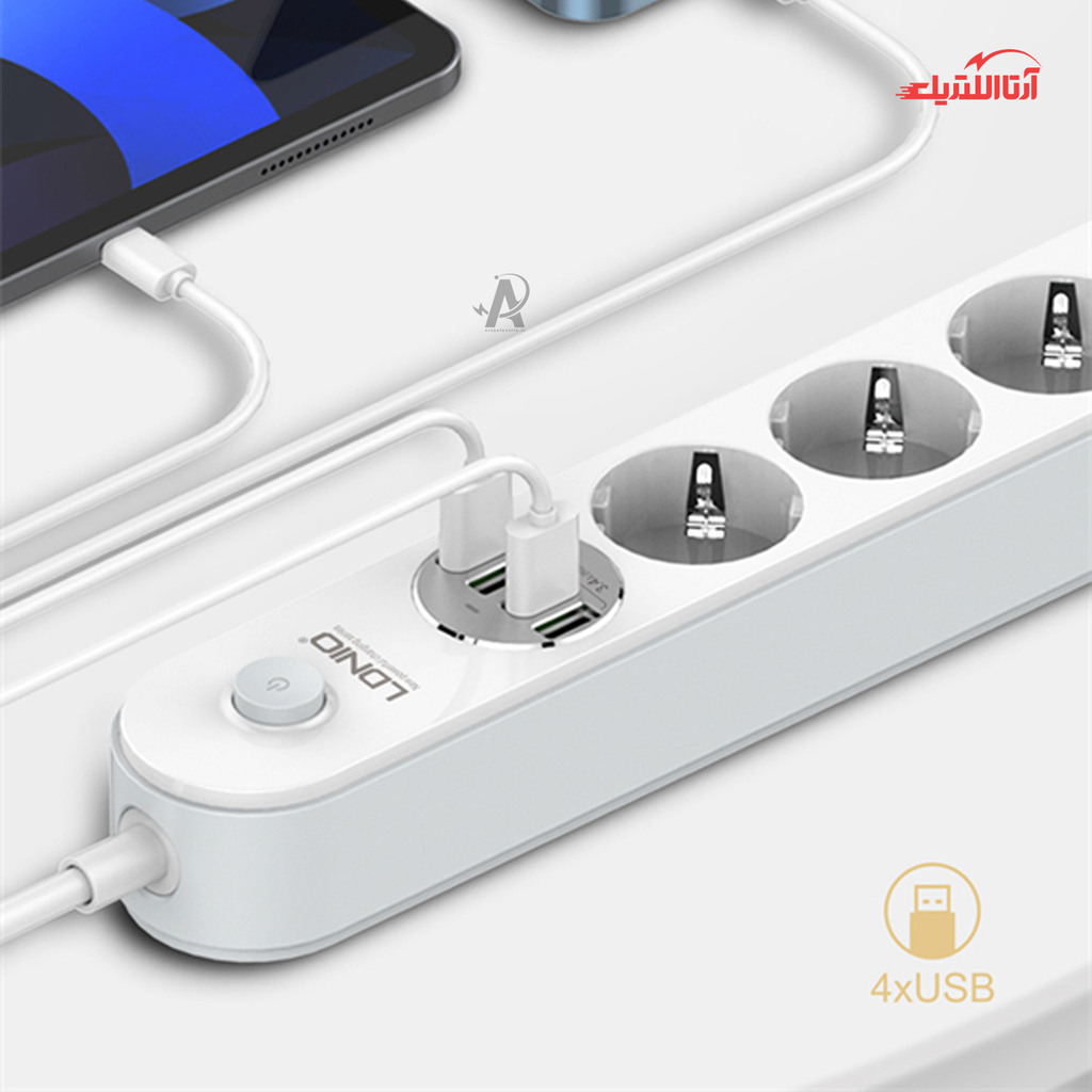 چند راهی برق 4 خانه الدینیو مدل SE4432، یکی از چندراهیهایی است که توسط مجموعه الدینیو تولید میشود. این محصول با چهار عدد پریز برق و 4 پورت شارژر USB، میتواند برای شارژ لپتاپ، انواع لوازم برقی، موبایل، ایرپاد، اسپیکر و… به کار رود. همچنین چندراهی الدینیو، میتواند لوازم برقی با مجموع توان 2500 وات را به خوبی پشتیبانی کند. توان این دستگاه،17 وات با جریان 3.4 آمپر است که با برق ولتاژ 100 تا 250 ولت، فعالیت میکند. از آنجایی که چندراهیها وسیله جذاب برای کودکان محسوب میشود، در این محصول محافظ کودک به کار رفته تا از فرزندان شما در برابر خطر برقگرفتگی، جلوگیری شود.