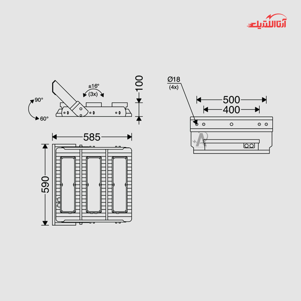 بررسی چراغ پروژکتوری 600 وات مازی نور مدل گلکسی پخش نور 55 درجه
