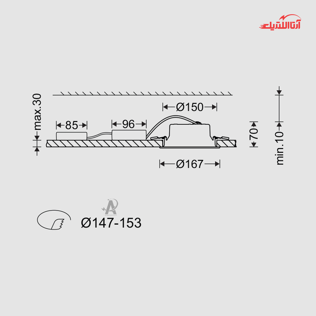 بررسی چراغ سقفی توکار 14 وات مازی نور مدل هلنا کامفورت دهانه 15 سانتی