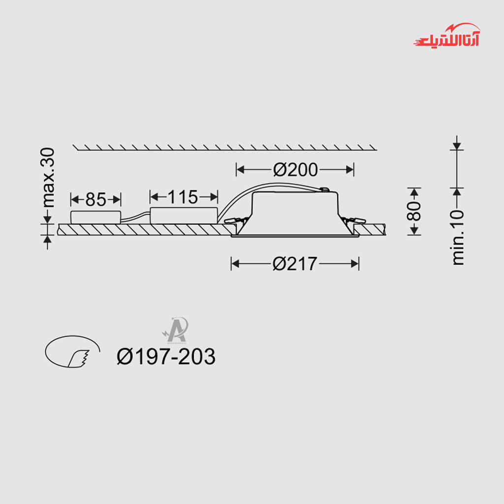 بررسی چراغ سقفی توکار 20 وات مازی نور مدل هلنا کامفورت دهانه 20 سانتی