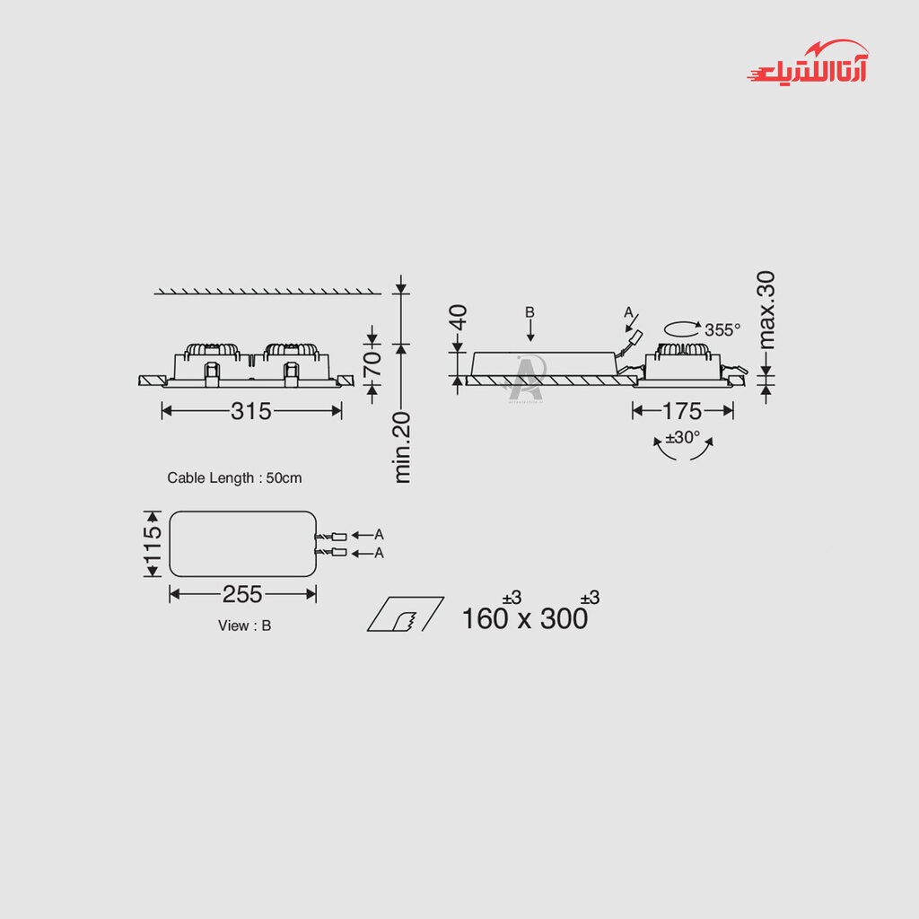 | ابعاد بیرونی چراغ (سانتیمتر) | 17.5 در 31.5 |