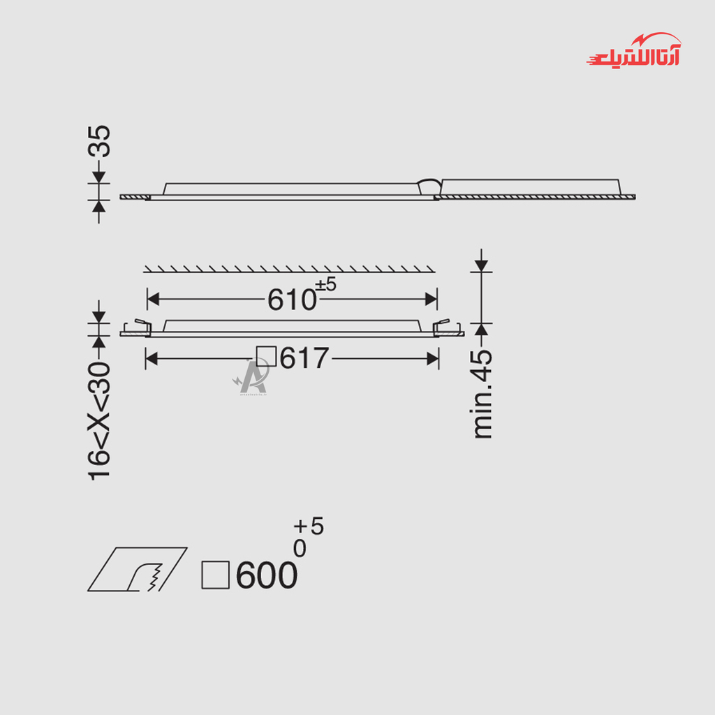 پنل LED توکار 49 وات 60 در 60 مازی نور مدل الگانس مناسب سقف کاذب یکپارچه
