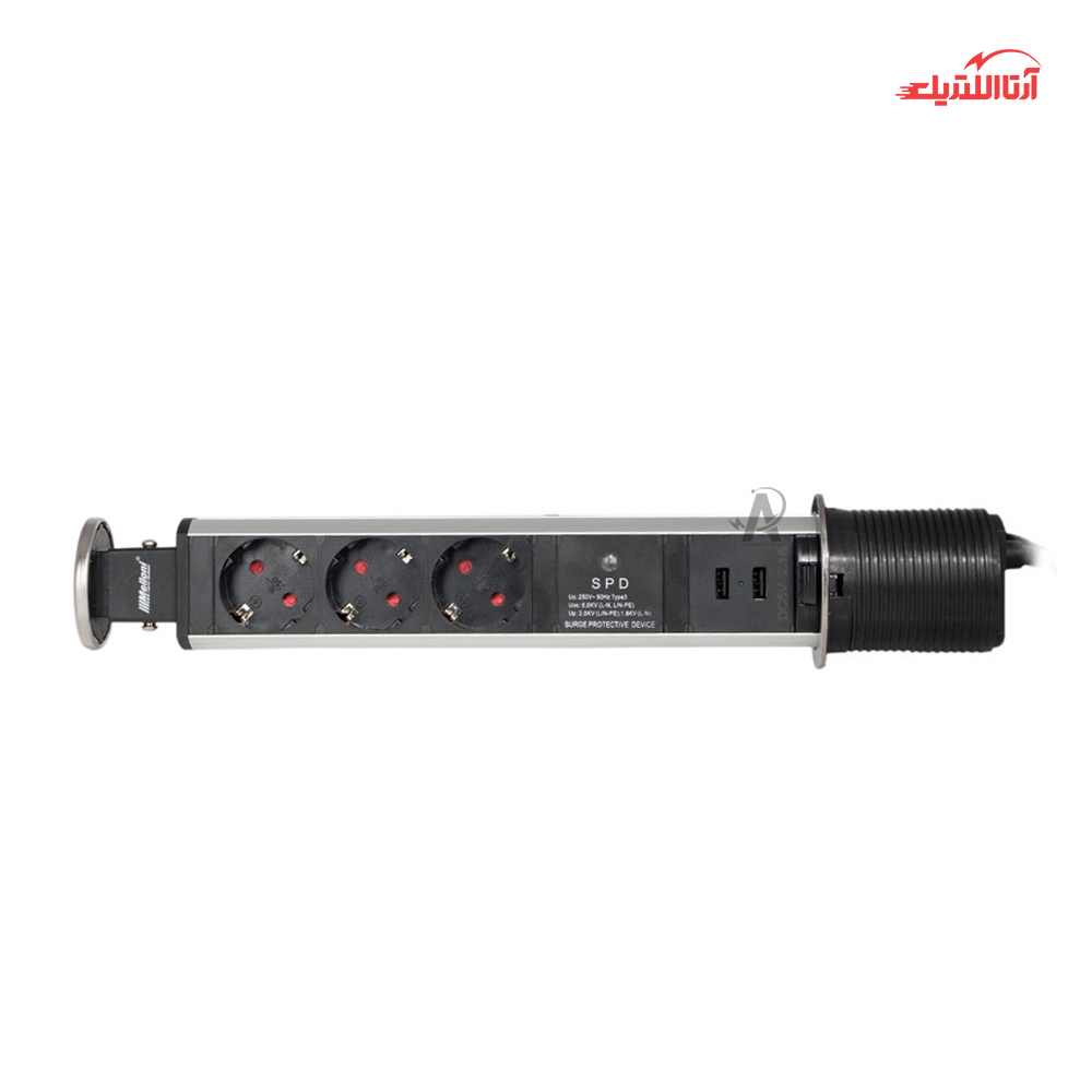محافظ برق سه خانه آسانسوری توکار استیل ملونی مدل 10006، از جمله این محصولات است که توسط مجموعه ملونی تولید میشود. این پریز ساختاری استوانهای دارد که برای استفاده از پریز، میتوانید آن را به سمت بالا کشیده و از جایگاه خارج کنید. این محصول به رنگ نقرهای و با ابعاد برش 6*6 سانتیمتر عرضه شده و برای استفاده در محیطهای مختلف مسکونی، اداری، دانشگاه، فروشگاه و مغازه، کتابخانه و سالن مطالعه و… بسیار مناسب است. محافظ برق سه خانه آسانسوری توکار استیل ملونی مدل 10006 با داشتن سه عدد پریز برق شهری و دو عدد پورت شارژ USB، از جمله مخصولات ملونیست که قابلیت محافظت از لوازم برقی شما در برابر نوسانات برقی را نیز دارد. از ویژگیهای این محصول میتوان به اشغال فضای بسیار کم، طراحی زیبا، استفاده آسان و سریع و تعداد پریزها و پورتهای مناسب، اشاره کرد.