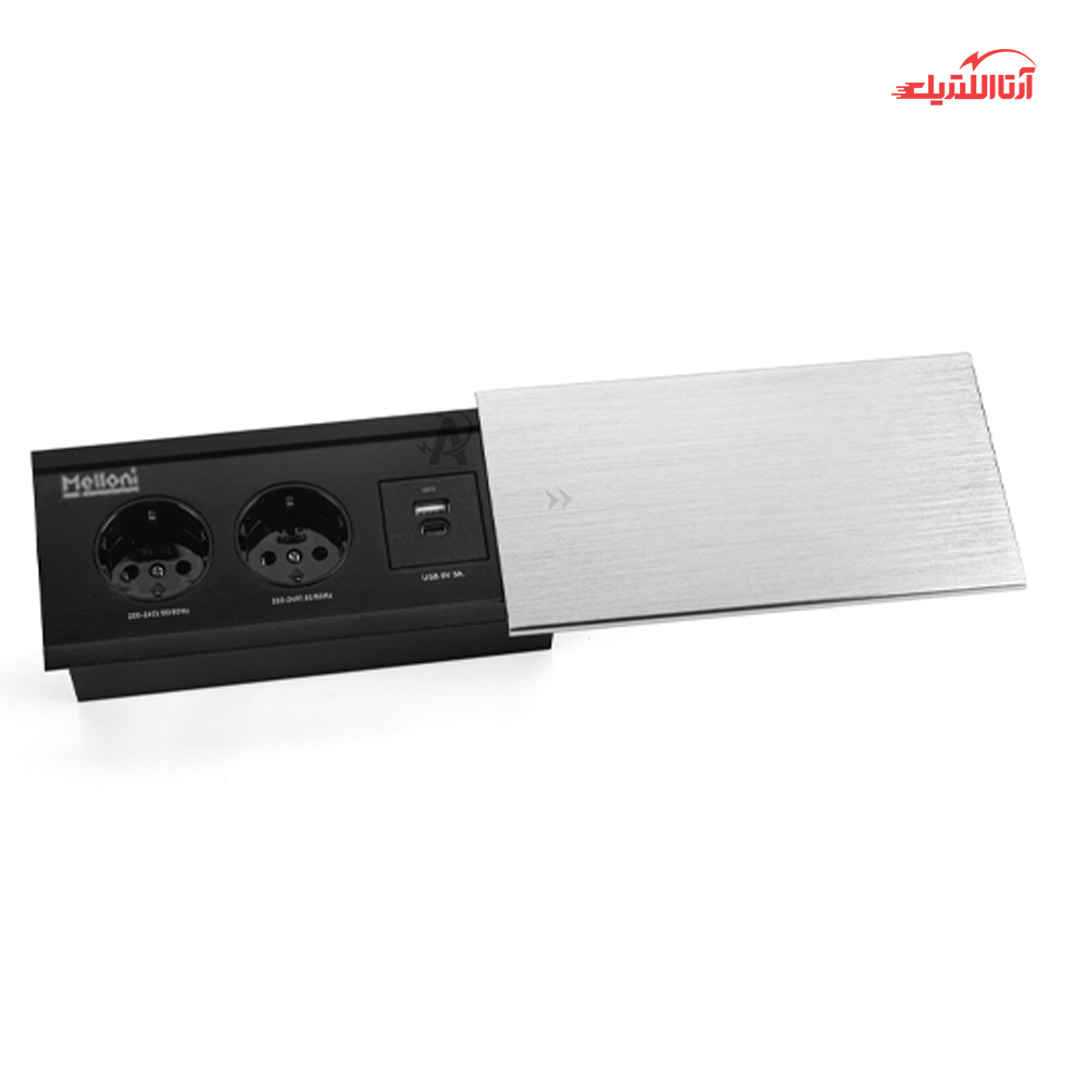 پریز توکار دو خانه درپوش دار ملونی مدل 10076، از جمله این محصولات است که توسط مجموعه ملونی تولید میشود. این پریز ساختاری توکار داشته و بعد استفاده از پریز، میتوانید آن را به وسیله درپوش کشویی ارائه شده به همراه پریز، ببندید. این محصول به رنگ مشکی و نقرهای و با ابعاد برش 18*7.2 سانتیمتر عرضه شده و برای استفاده در محیطهای مختلف مسکونی، اداری، دانشگاه، فروشگاه و مغازه، کتابخانه و سالن مطالعه و… بسیار مناسب است. از ویژگیهای این محصول میتوان به داشتن درپوش کشویی، اشغال فضای بسیار کم، طراحی زیبا، استفاده آسان و سریع و تعداد پریزها و پورتهای مناسب، اشاره کرد. پریز توکار دو خانه درپوشدار ملونی، دارای دو پریز برق شهری، یک عدد پورت Usb Charger Type A و یک عدد پورت Usb Charger Type C با ولتاژ 5 ولت و جریان 3 آمپر است که پورتهای آن هر دو Fast Charge هستند.
