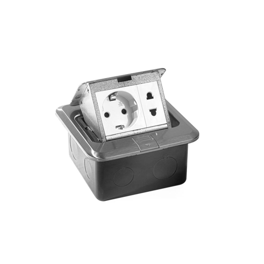 پریز کف ملونی مدل 10112 با طراحی توکار و نصب در کف زمین، انتخابی حرفه‌ای برای محیط‌هایی است که نیاز به دسترسی آسان و مرتب به برق دارند. این محصول با یک سوکت برق استاندارد 16A-250V و یک سوکت دو پین 10A-220V عرضه می‌شود و برای استفاده در دفاتر کاری، سالن‌های کنفرانس، مراکز تجاری و حتی فضاهای خانگی مدرن بسیار کاربردی است.