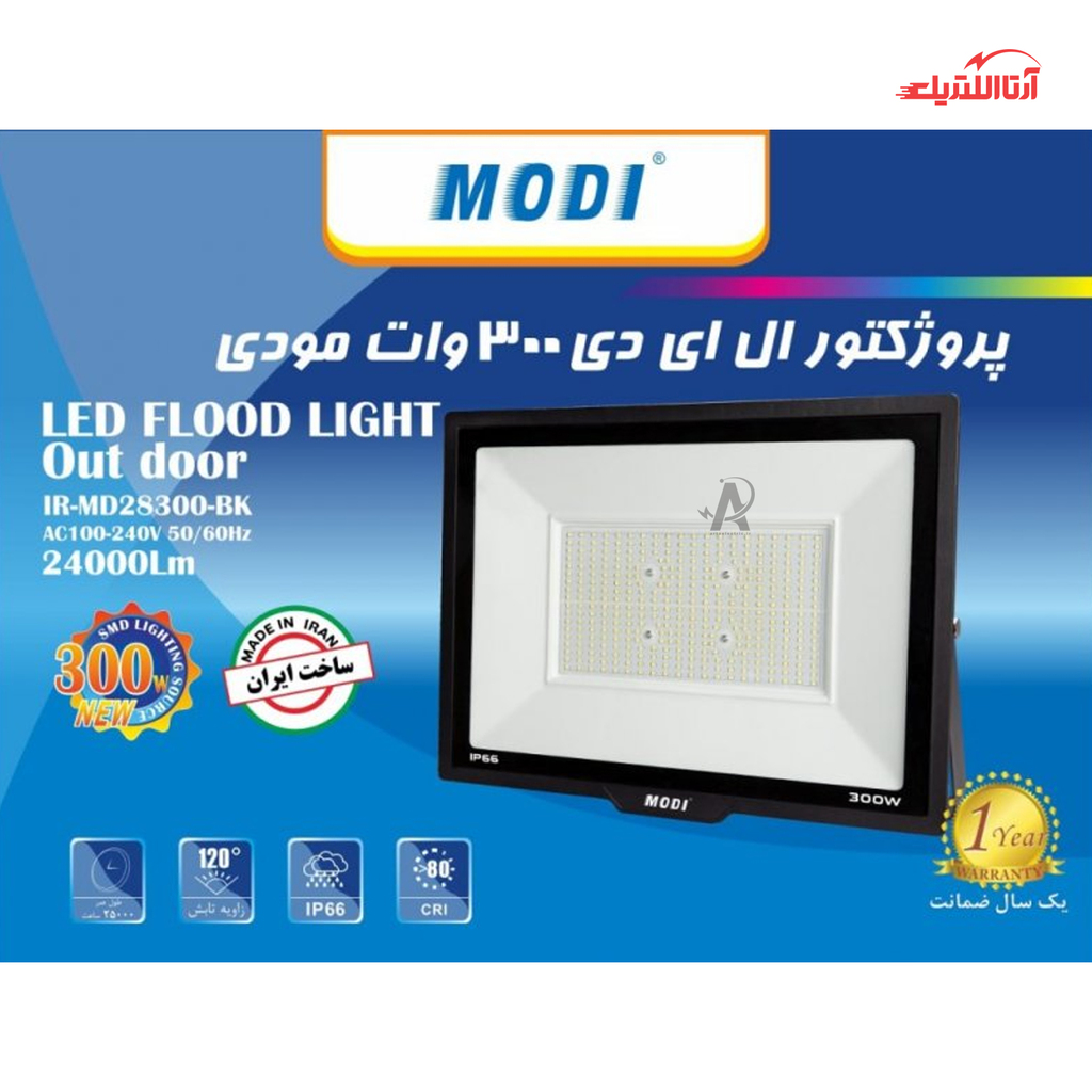 این محصول از زاویه تابش نور 120 درجه برخوردار بوده و با داشتن شاخص نمود رنگ >80، نگرانیهای شما را در زمینه نورپردازی به طور کامل برطرف میسازد. همچنین از جمله ویژگیهای منحصربهفرد این محصول میتوان به درجه حفاظت IP65 آن اشاره کرد که پروژکتور را به محصولی مقاوم در برابر آب و رطوبت و همچنین گرد و غبار تبدیل میکند. شما میتوانید از پروژکتور اس ام دی 300 وات مودی، بدون نگرانی برای روشنایی محیطهای سرباز اسستفاده کنید.