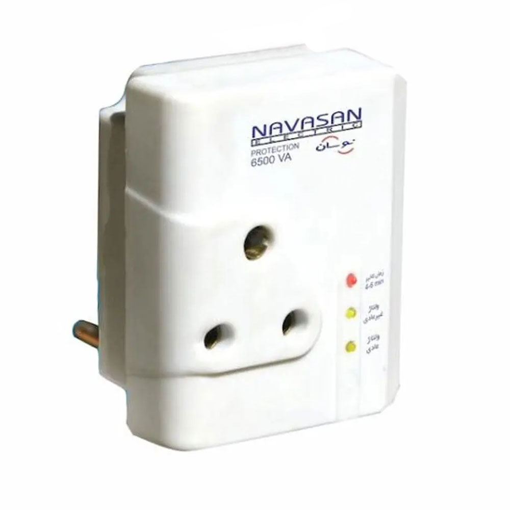 محافظ کولر گازی 6500 ولت آمپر نوسان الکتریک مدل volex ولکس، با سه شاخه و مستقیم به پریز وصل می‌شود. این مدل مناسب انواع کولر گازی، لوازم برقی پرمصرف و… است. همانطور که بر روی شکل نیز مشاهده می‌کنید، دستگاه 3 حالت کاری دارد: ولتاژ غیرعادی، ولتاژ عادی و زمان تاخیر. محدوده ولتاژ ورودی به دستگاه از 170 تا 255 ولت تغییر می‌کند.