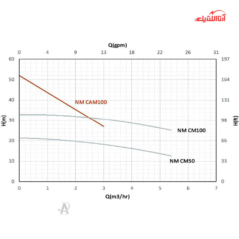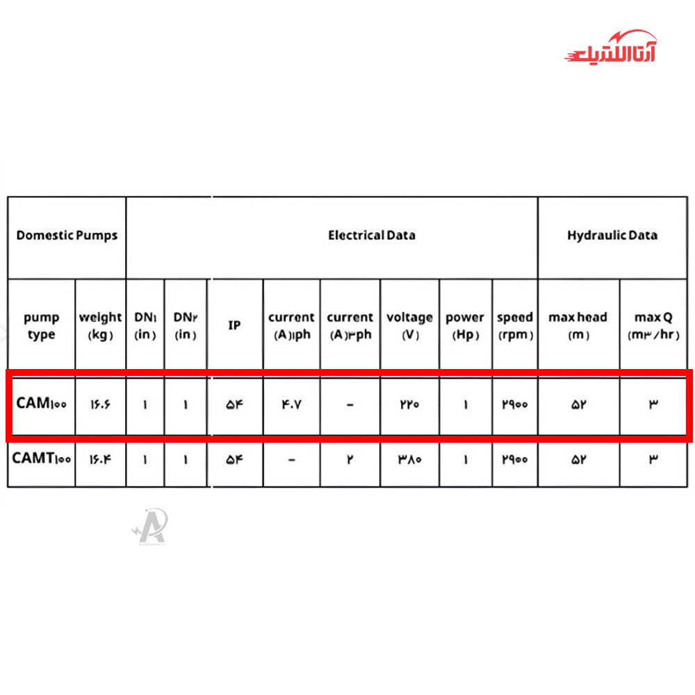 ویژگی های پمپ آب جتی 1 اسب تکفاز نوید موتور مدل CAM100