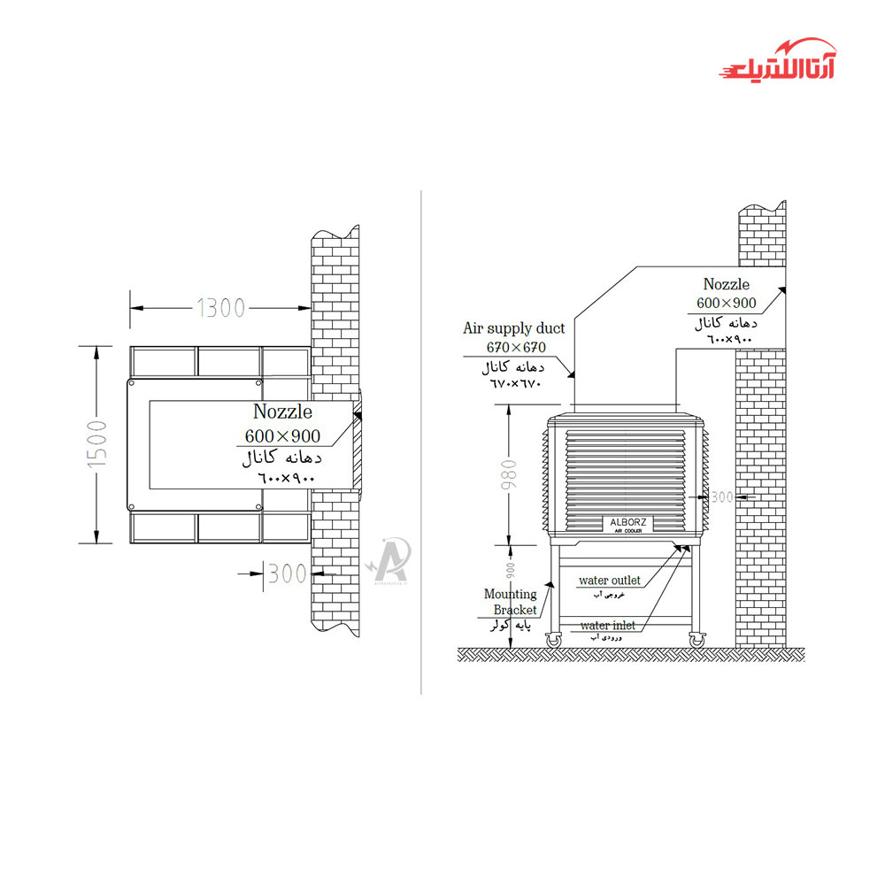 - آبریز: محلی برای ریختن آب به داخل تشت کولر.