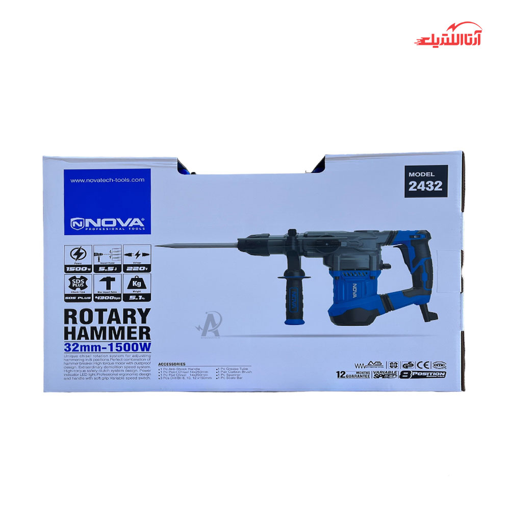 بررسی دریل بتن کن 1500 وات سه حالته 32 میلیمتری نووا کد 2432