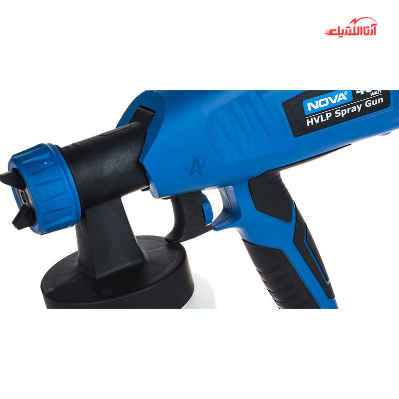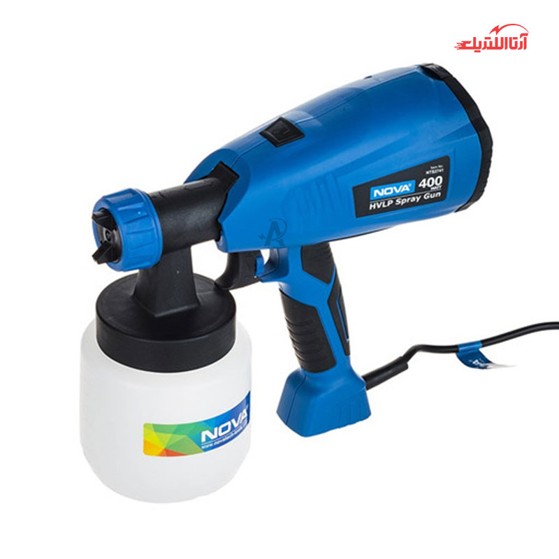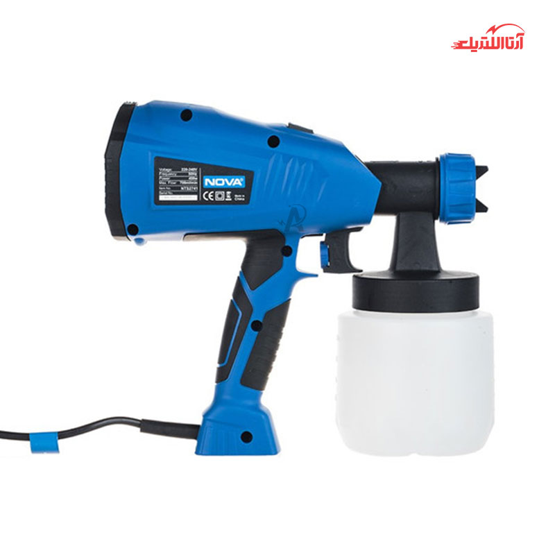 در بازار به این تفنگ پاششی اسپری گان هم میگویند که در مدلهای مختلف طراحی و تولید شده است (بادی-اتوماتیک-دستی). این محصول دارا بودن یک عدد کابل برقی حدود 2 متری، قیف و مخزن رنگ با ظرفیت 800 میلیلیتر است. قطر نازل این محصول 1.8 و 2.6 میلیمتر، توان آن 400 وات و وزن آن حدود 1600 گرم است. لازم به ذکر است از پلاستیک با کیفیت بالا برای ساخت و طراحی نازل استفاده شده است. این محصول باکیفیت، دارای 12 ماه گارانتی شرکت نووا است.