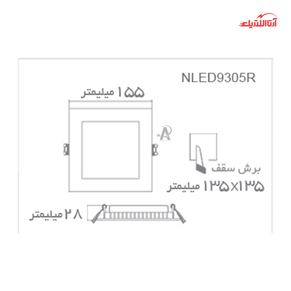 بررسی چراغ سقفی ال ای دی توکار 12 وات مربع ان وی سی کد NLED9305R