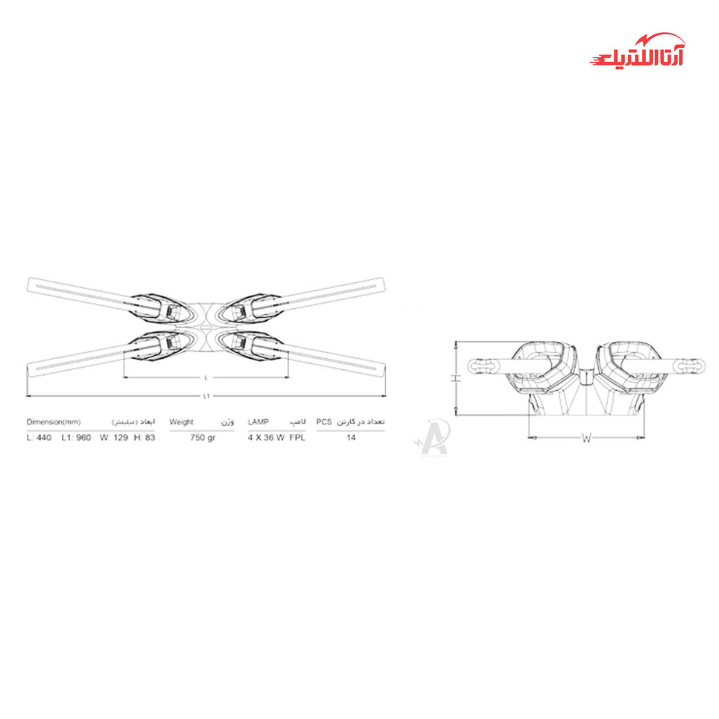 | تعداد لامپ ها | 4 |