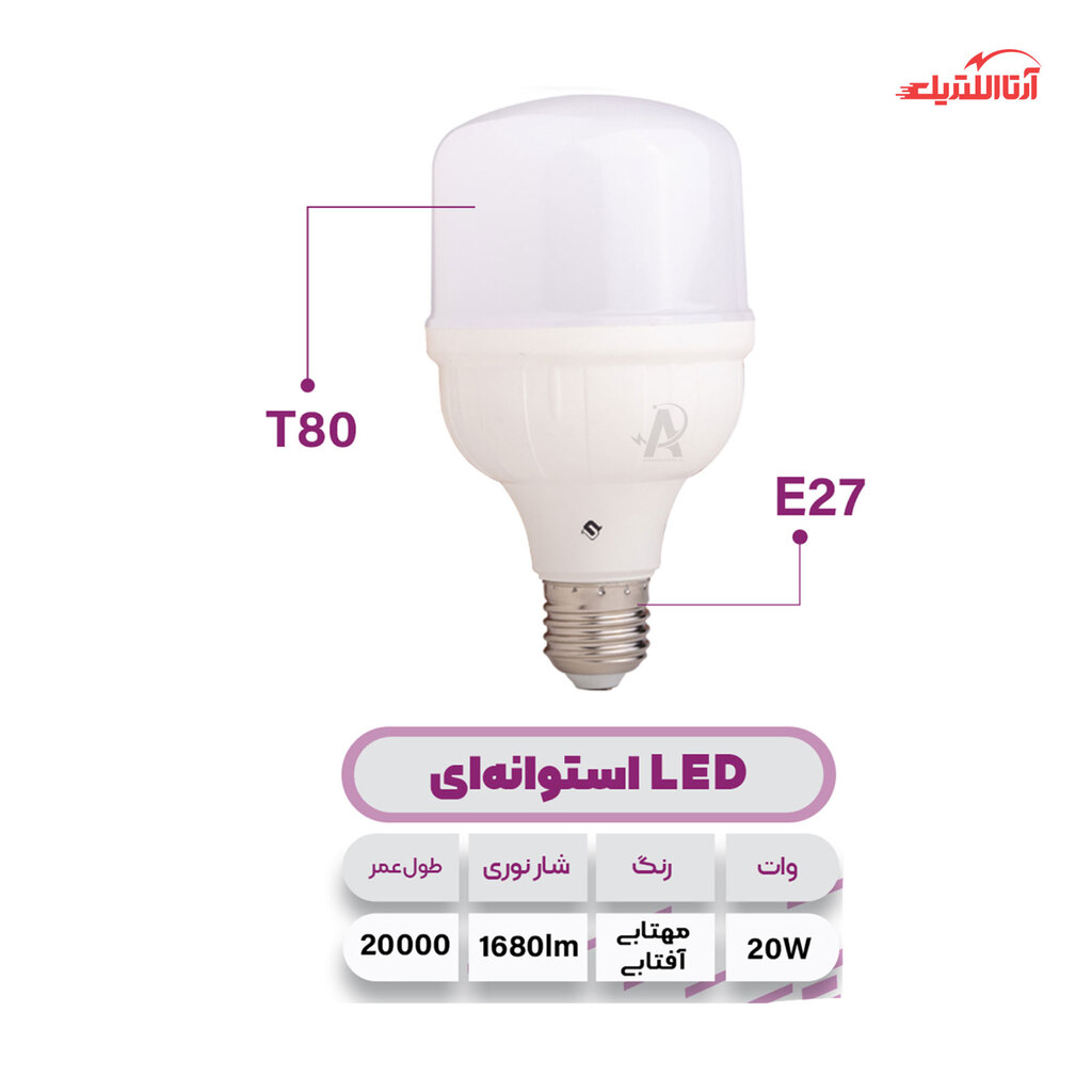 مشخصات فنی لامپ ال ای دی استوانه 20 وات پارس شوان