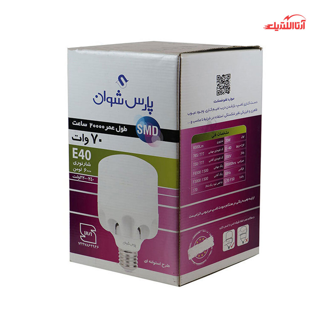 بررسی لامپ ال ای دی استوانه 70 وات پارس شوان پایه E40