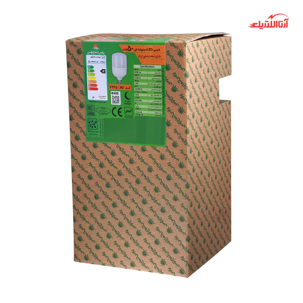 بررسی لامپ ال ای دی استوانهای 50 وات پارس شعاع توس سرپیچ E27