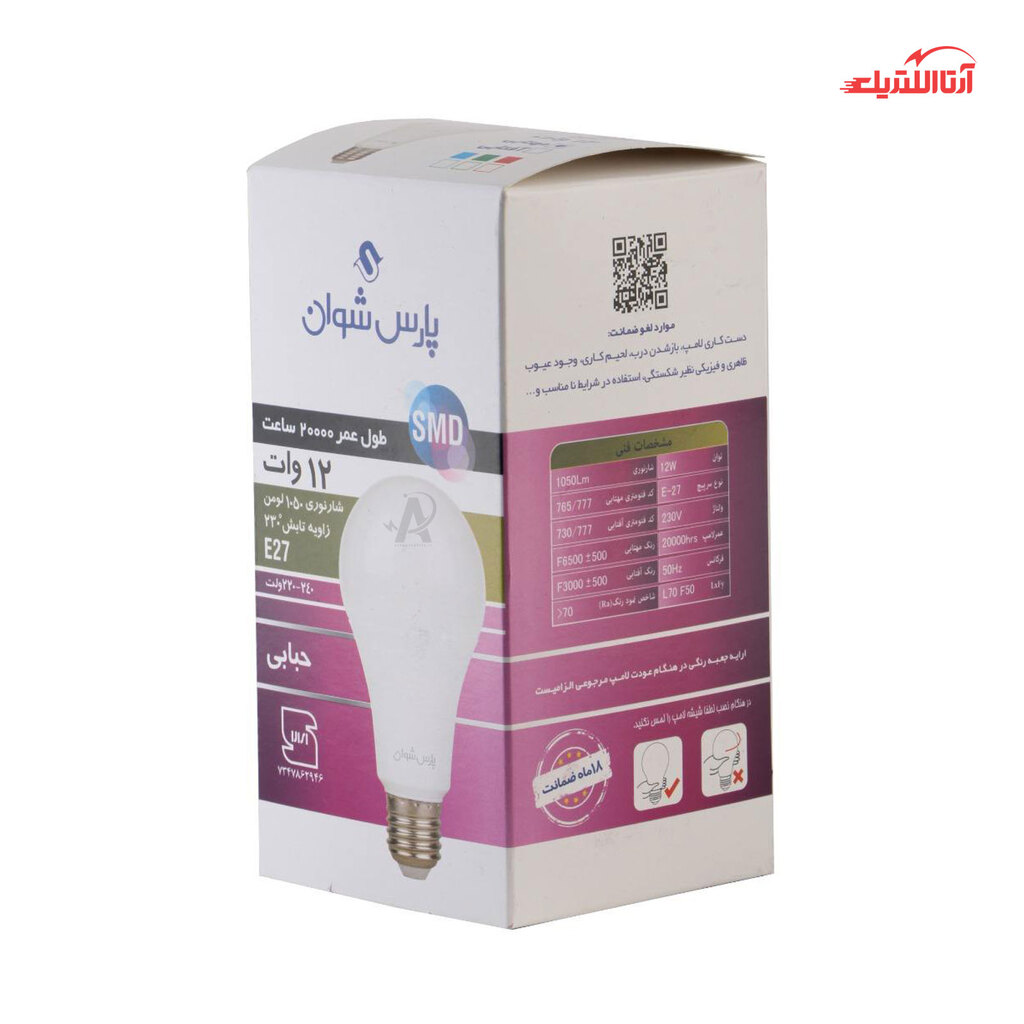 ویژگی ها و مشخصات فنی لامپ ال ای دی حبابی 12 وات E27 پارس شوان