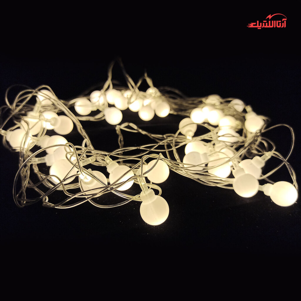 ریسه ال ای دی طرح گوی پلاستیکی، با رنگ نور بسیار زیبای آفتابی، مناسب نورپردازی داخلی است. این ریسه را میتوانید برای تزئین اتاق خواب یا در روزهای جشن تولد، عقد و… استفاده کنید. توپها از پلاستیک ساخته میشوند و نشکن هستند. در داخل هر توپ پلاستیکی یک ال ای دی قرار دارد. 40 عدد گوی بر روی سیمی مفتولی و منعطف با طول 5 متر، نصب شدهاند.