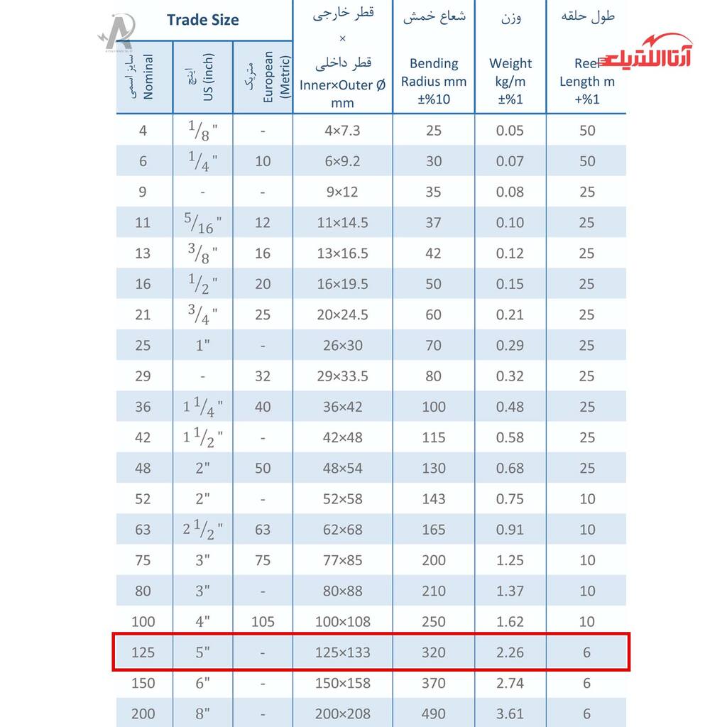 | سایز اسمی | 125 |