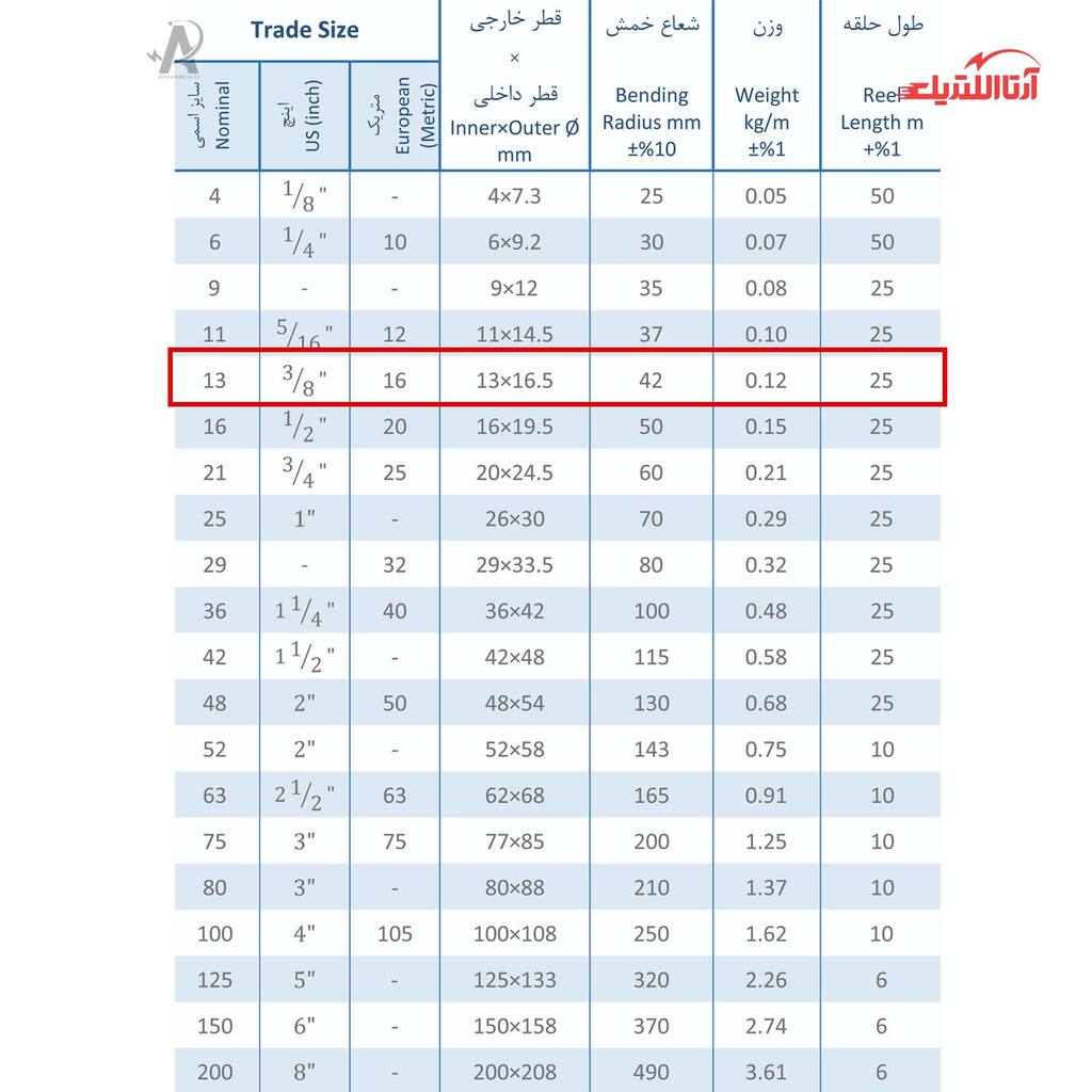 | سایز اسمی | 13 |