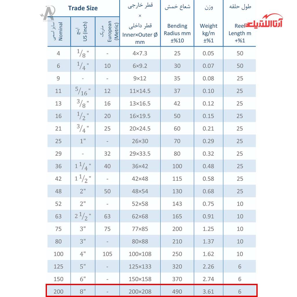 | قطر خارجی لوله (سانتیمتر) | 208 |