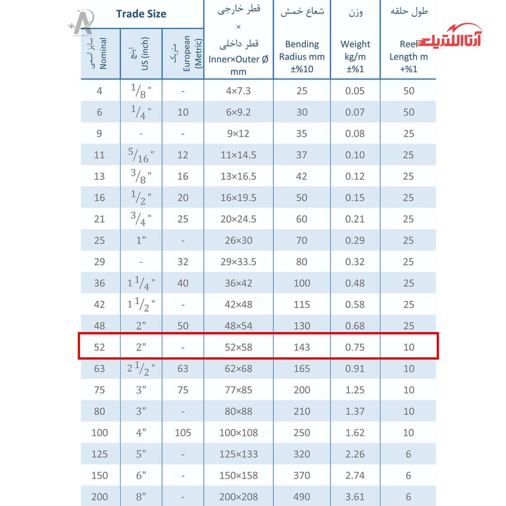 | سایز اسمی | 52 |