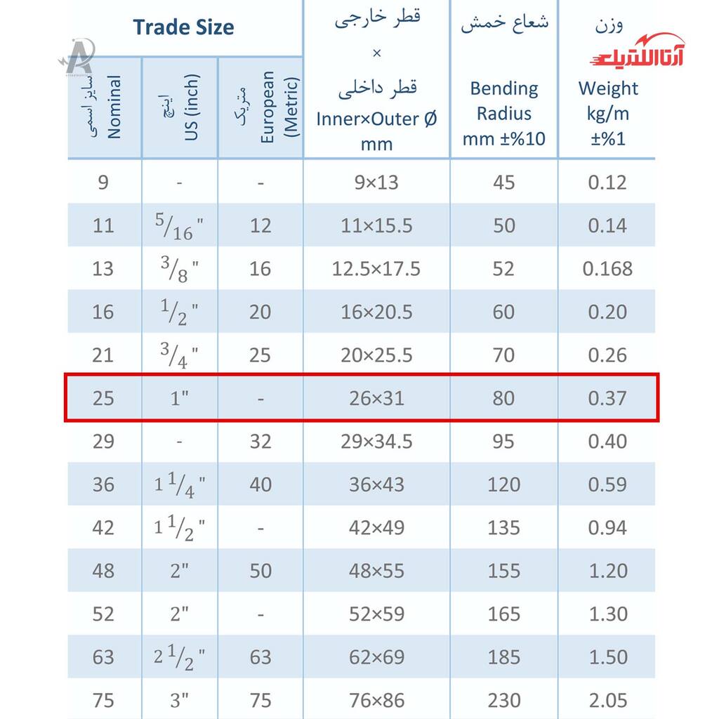 | سایز اسمی | 25 |