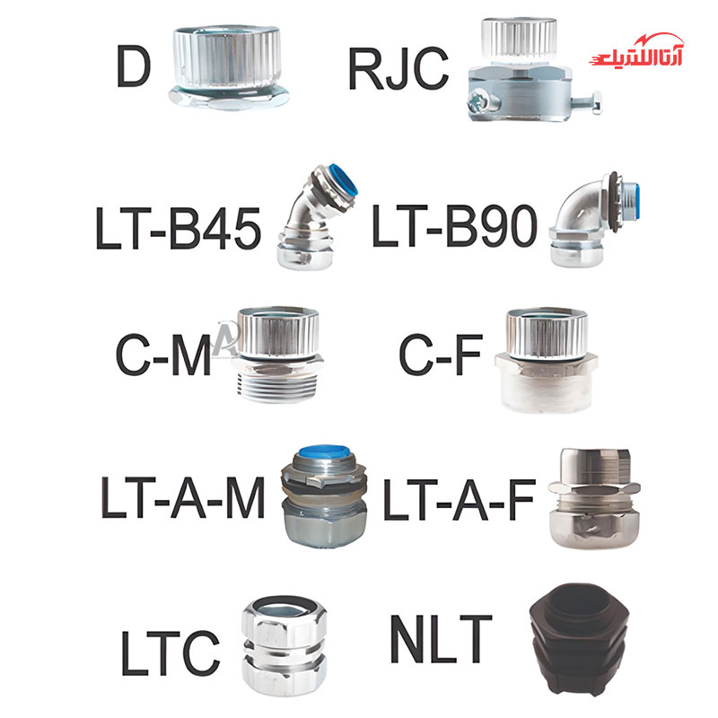 شما میتوانید برای این لوله فلکسی از گلندهای تیپ LTC، NLT، LT-B90، LE-B45، LT-A-F، LT-A-M، D، C-M، C-F و RJC، استفاده کنید.