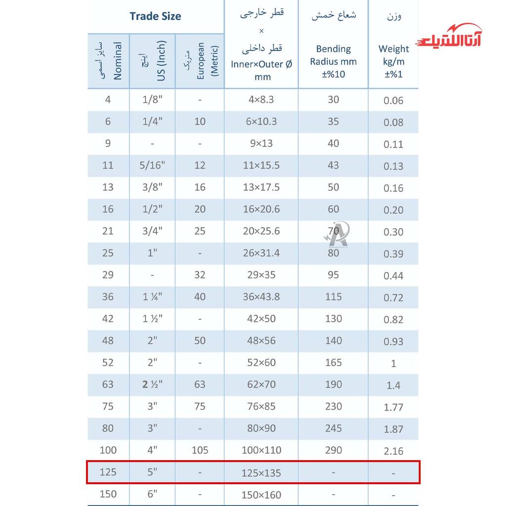 بررسی لوله فلکسی روکشدار سایز 125 رهورد خراسان تیپ FC1P