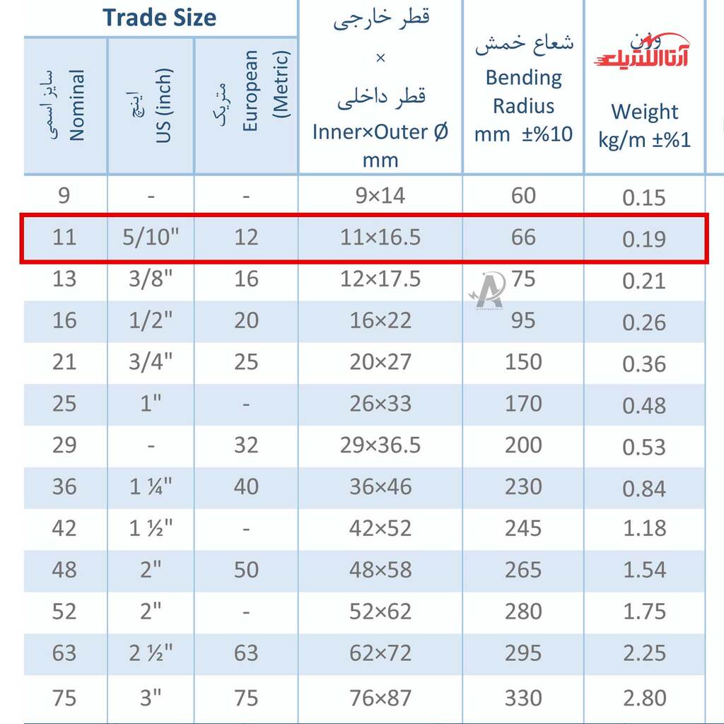 | سایز اسمی | 11 |
