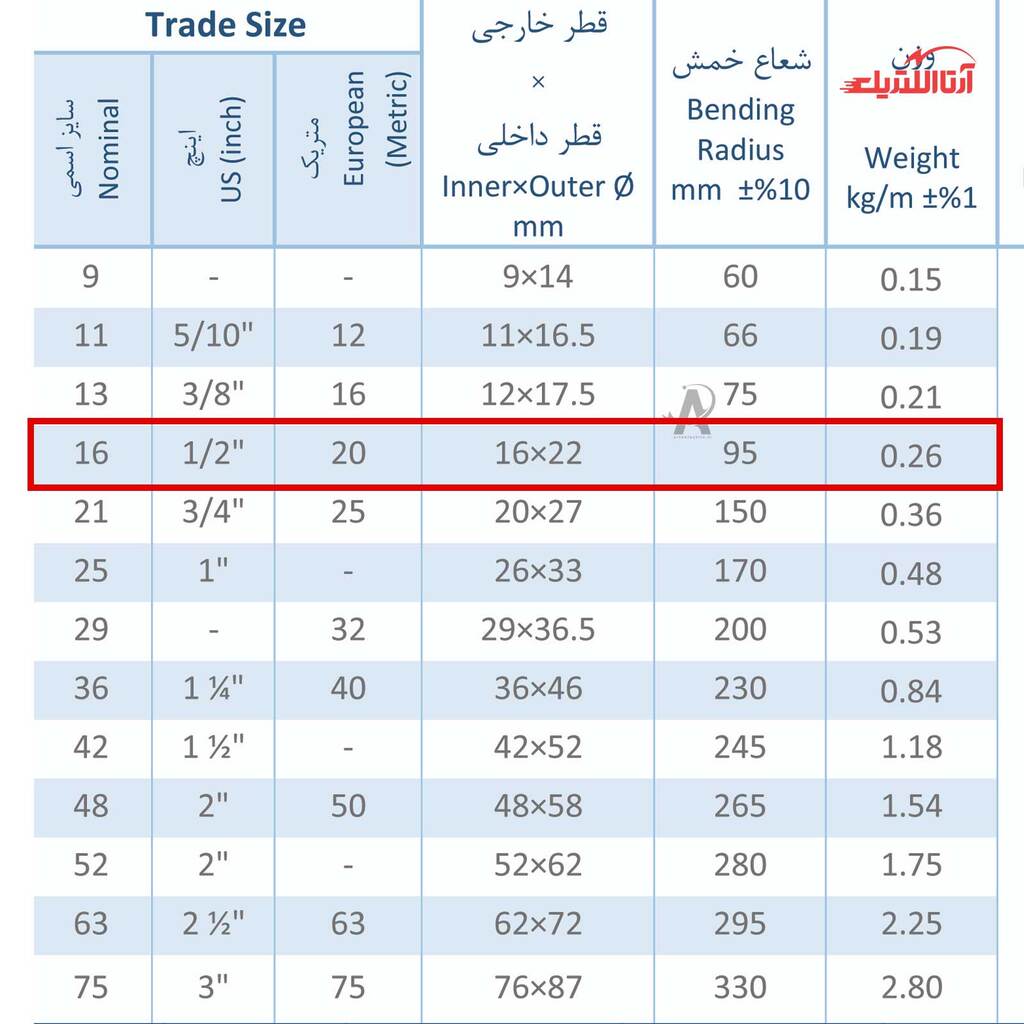 | سایز اسمی | 16 |