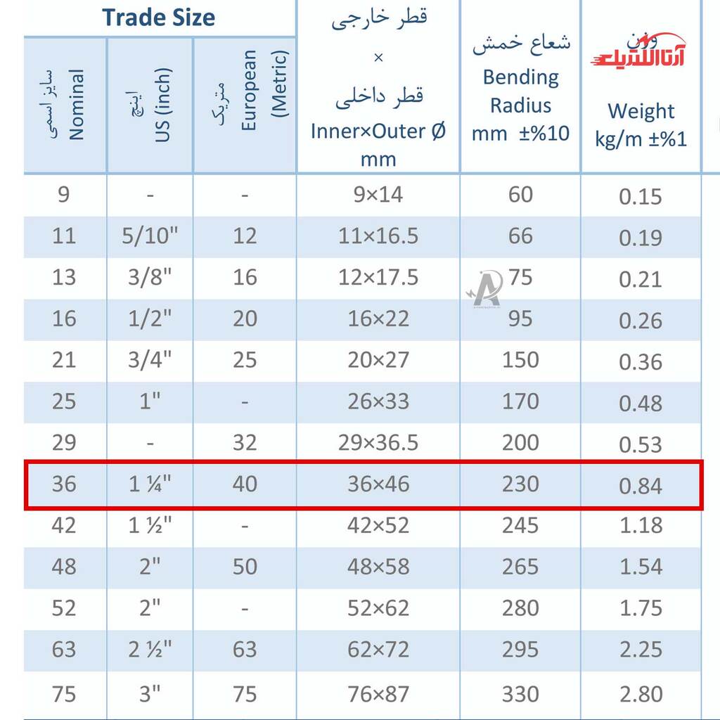 | سایز اسمی | 36 |