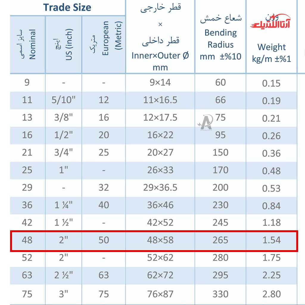 | قطر داخلی لوله (سانتیمتر) | 48 |