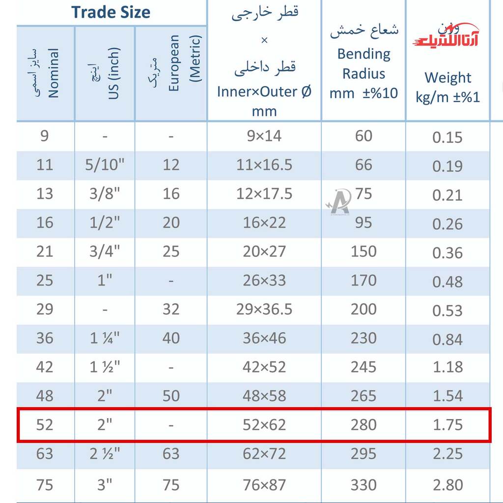 | قطر داخلی لوله (سانتیمتر) | 52 |