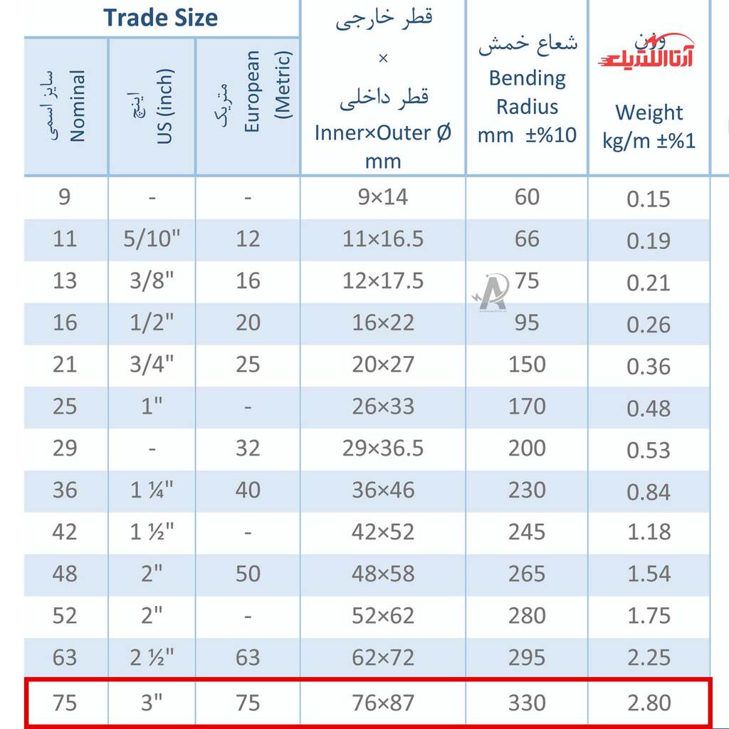 | قطر داخلی لوله (سانتیمتر) | 76 |